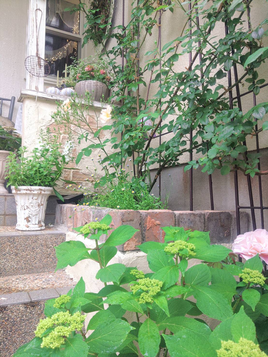 頑張って作ったモルタル造形の壁やその他の造作は一部花に隠れてしまいますが、それも考慮してデザインをしています。